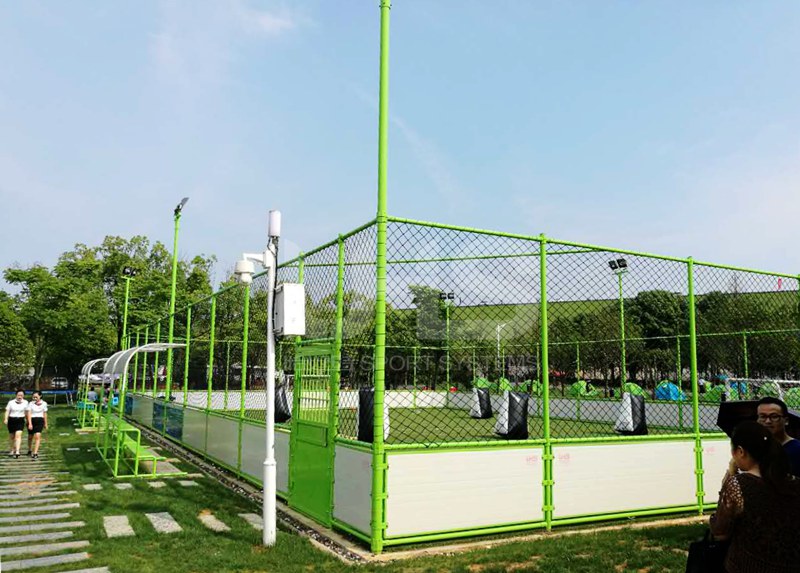 佛山市三水区白坭镇体育馆位于汇龙大道。项目是位于体育馆旁边的一座全新的笼式足球场,采用UHS-0203波浪网围档组合而成,色泽和外观均采用更显高大上的苹果绿。