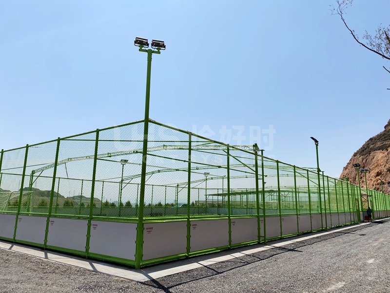 项目位于甘肃省兰州市郊凤凰山的两片5人制笼式足球场,这两座足球场是建造在悬崖绝壁脚下,戈壁滩之上。景色很独特,隶属于兰州市宏邦足球俱乐部所运营。项目采用的是UHS-0201国体认证钢结构笼式足球场系统,其中下围挡是锌合金复合板,上围档采用的是UHS-1007精钢冲压拼装围网组合而成。顶部软网采用的是PE无结网编织而成。