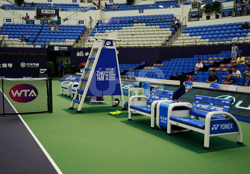 恰好时为首届珠海WTA超级精英赛提供了各系列场地配套设施。包括裁判椅、球员休息椅、司线椅、网球网、推水器、吸水器等定制的配套设施。
