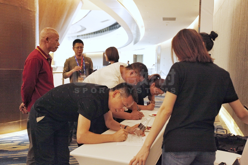 意大利马贝集团全球弹性及纺织材料安装系统产品系列总监Angelo Nobili先生、马贝中国区业务总监邓吉娜女士、广东恰好时体育有限公司董事长欧旭亚先生共同出席了本次会议。会议主题是马贝TNS系统产品宣讲和现场的施工技术交流。现场邀请了许多国内经验丰富的体育场馆施工团队和运动地坪代理商。马贝就国内运动场地施工所遇到的许多复杂地面处理问题进行了逐一的解答和施工演示。