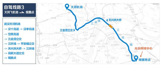 地铁:2号线光谷广场站,出站乘坐观赛线路1,从光谷广场直达光谷网球中心。