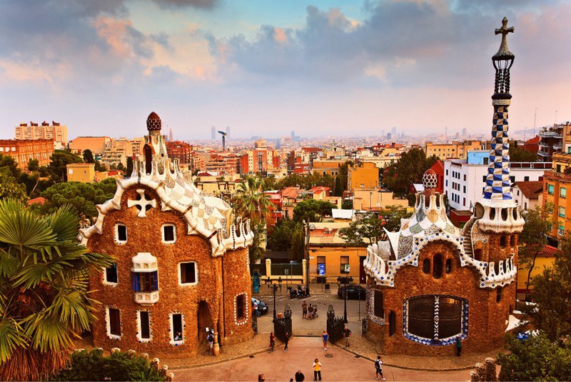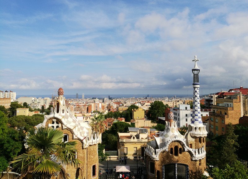 第三站是高迪的另一个伟大作品:奎尔公园,又称高迪公园。奎尔公园是巴塞罗那富商奎尔伯爵计划建立并由高迪设计的一个社区旧址,建于1900-1914年,并被联合国教科文组织列入世界文化遗产。1922年,市政府将其收购,开辟为社区公园对外开放。园区内不管是石阶、石柱和弯曲的石椅上都充满了各式的马赛克,全由瓷砖拼贴而成,色彩灿斓,让人有身处梦境之感。在观景天台上俯瞰,让人对建筑物和构筑物的美妙精细之处惊叹不已,回味无穷。