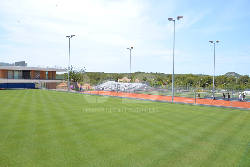 作为马洛卡岛最知名的球场施工企业,IBESPORT当仁不让地承接了马洛卡公开赛的改造工程,早在2007年,IBE便成功打造了费德勒vs纳达尔的红土-草地表演赛而被人熟知。如今,改造原本是红土场地的Santa ponsa country club对于有着草地施工经验的IBE来说简直易如反掌,于是我们就看到了世界上仅有一座旁边是红土围绕的草地网球场。