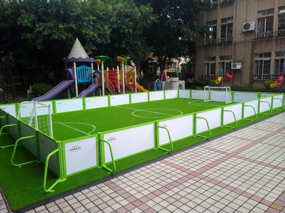 迷你型儿童笼式足球场具有安装方便、占地面积少、工艺独特、简约美观等特点;
