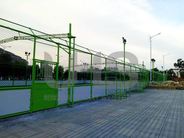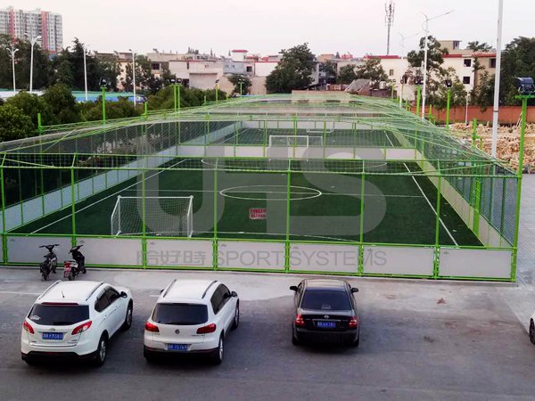 南阳体育中心5人制笼式足球场位于河南省第三大城市南阳市中心城区的东北部,东临美丽的滨河路,西临体育产业用地,南北为规划的城市次干道。球场采用铝合金复合挡板和精钢冲压拼装围网组合而成,两边配有休息亭,顶网采用PE有结软网编制而成。