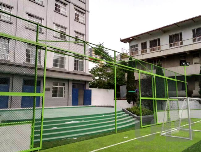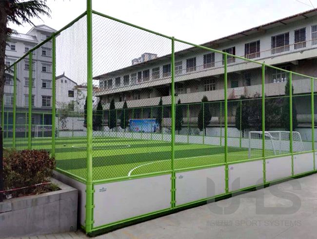 商洛市商州区东郊初级中学地处商洛市城东2.5公里的王巷村,是大赵峪街道办事处辖区内的一所初级中学。球场采用钢结构拼装围网UHS-1007和铝合金复合挡板组合而成。并在球场一面设有一个双推门。