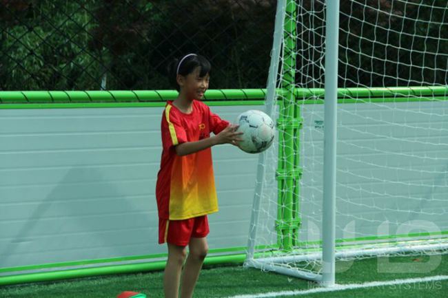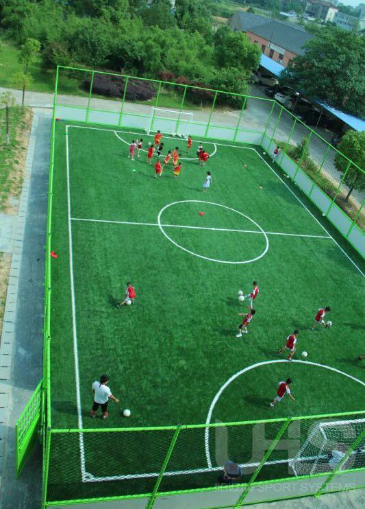浙江衢州衢江区实验小学地处西美丽的衢江之畔,学校创建于1906年,历史悠久。球场为标准的5人制笼式足球场,采用铝合金复合挡板和PE无结软网组合而成。最大限度保证在使用过程中,球场四周因外力撞击而导致变形。